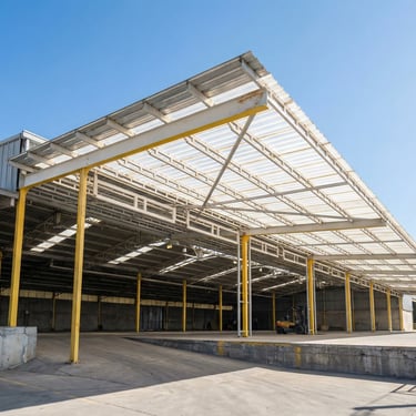 Sanayi tesislerinde sevkiyat ve yükleme alanlarının üzerini kapatarak operasyonun hava koşullarından etkilenmeden sürmesini sağlıyoruz. Ticari yapılarda ve konutlarda ise bina girişleri, teraslar veya açık otoparklar için estetik saçaklar üretiyoruz. Kullandığımız çelik iskelet, rüzgar yüküne karşı dirençli olup, üzerine uygulanan polikarbonat, cam veya sandviç panel kaplamalarla tam sızdırmazlık sağlar.