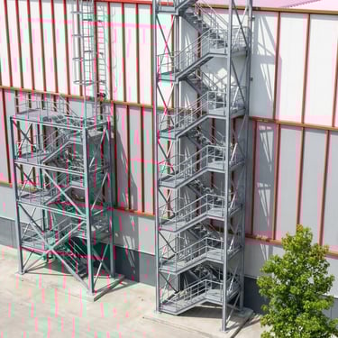 Yangın merdivenleri, binalar için bir seçenek değil, insan hayatını koruyan yasal bir zorunluluktur. Paksan Çelik, "Binaların Yangından Korunması Hakkında Yönetmelik" ve itfaiye standartlarına birebir uygun, güvenli tahliye sağlayan çelik yangın merdivenleri üretir. Amacımız, acil durumlarda panik halindeki kalabalığın binayı en hızlı ve güvenli şekilde terk etmesini sağlamaktır.